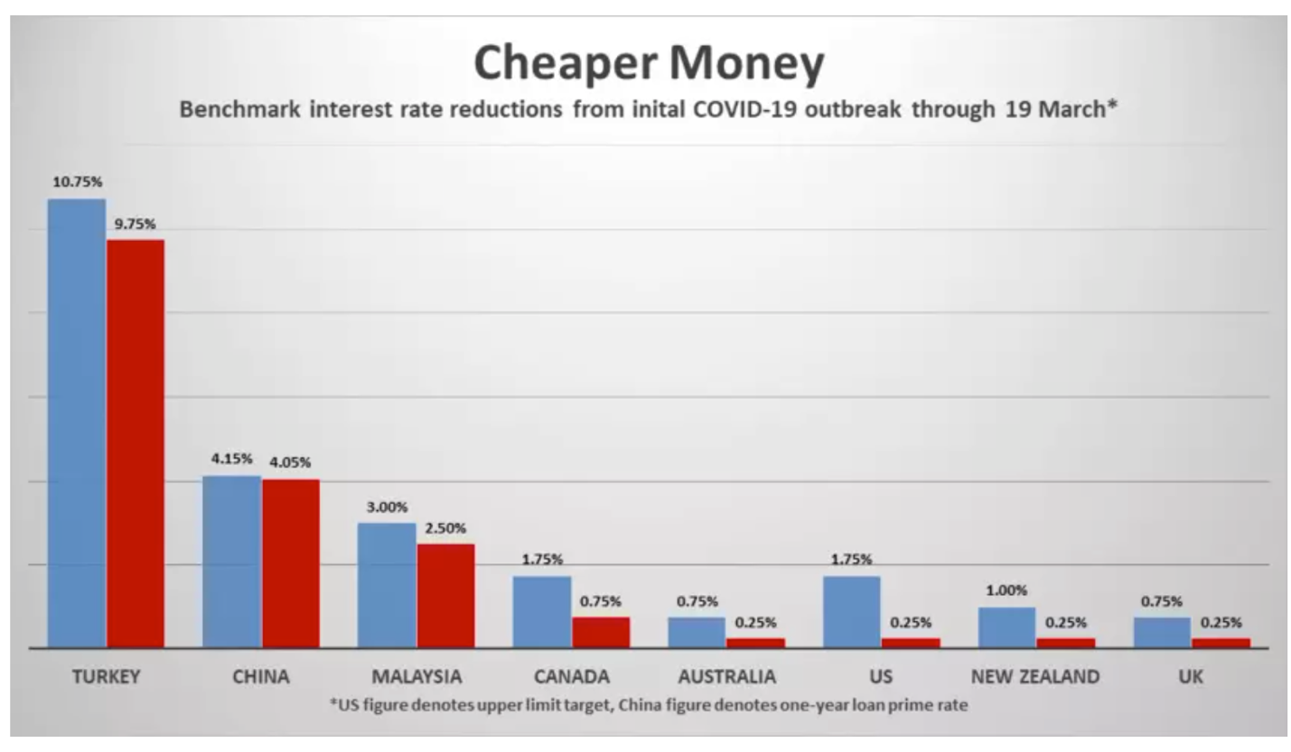 1. Most countries are currently under lockdown, a measure that is paired with a quantitative easing debt-buying program.
