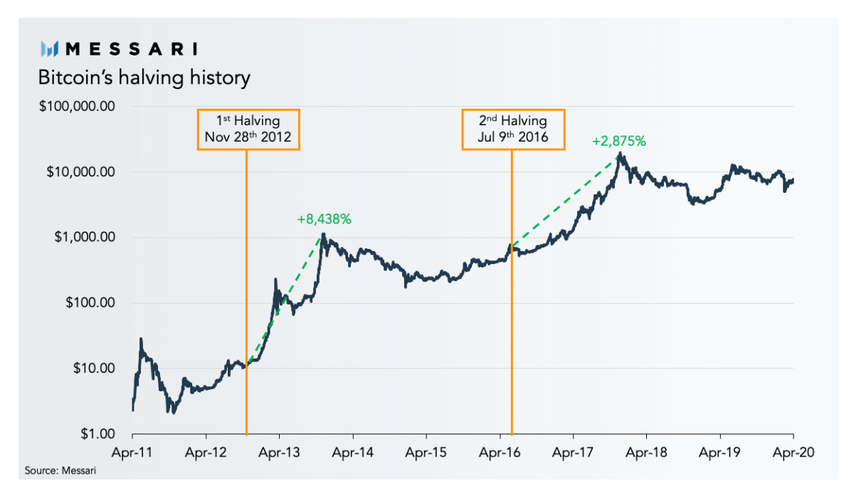 Above is a chart that indicates the halving effect on the market in a long-term perspective. As you can see, July's halving in 2016, in conjunction with rising demand, has resulted in a meaningful price increase (+2875% in 2 years).