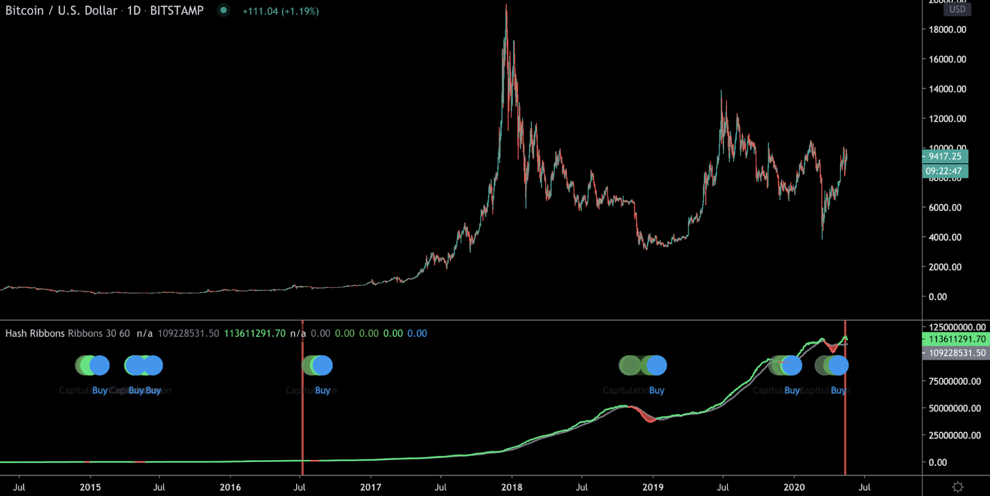 (https://medium.com/capriole/hash-ribbons-bitcoin-bottoms-60da13095836)